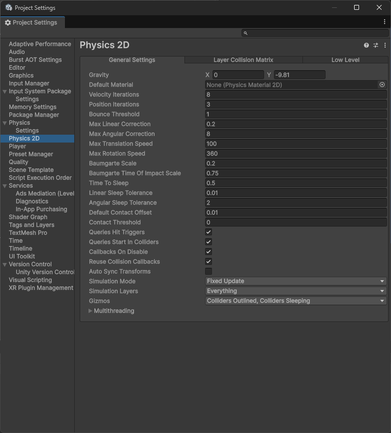 - Project Settings → Physics 2D